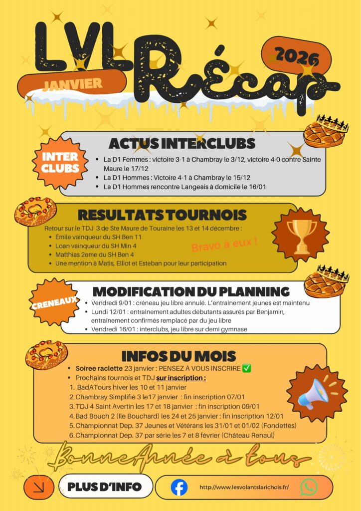 Gazette de Janvier par admin_lvlr | 7 Jan 2026 | A la une, News Bonne année à tous! Voici les actualités du mois de Janvier. On vous attend sur les terrains ! Partager sur Facebook